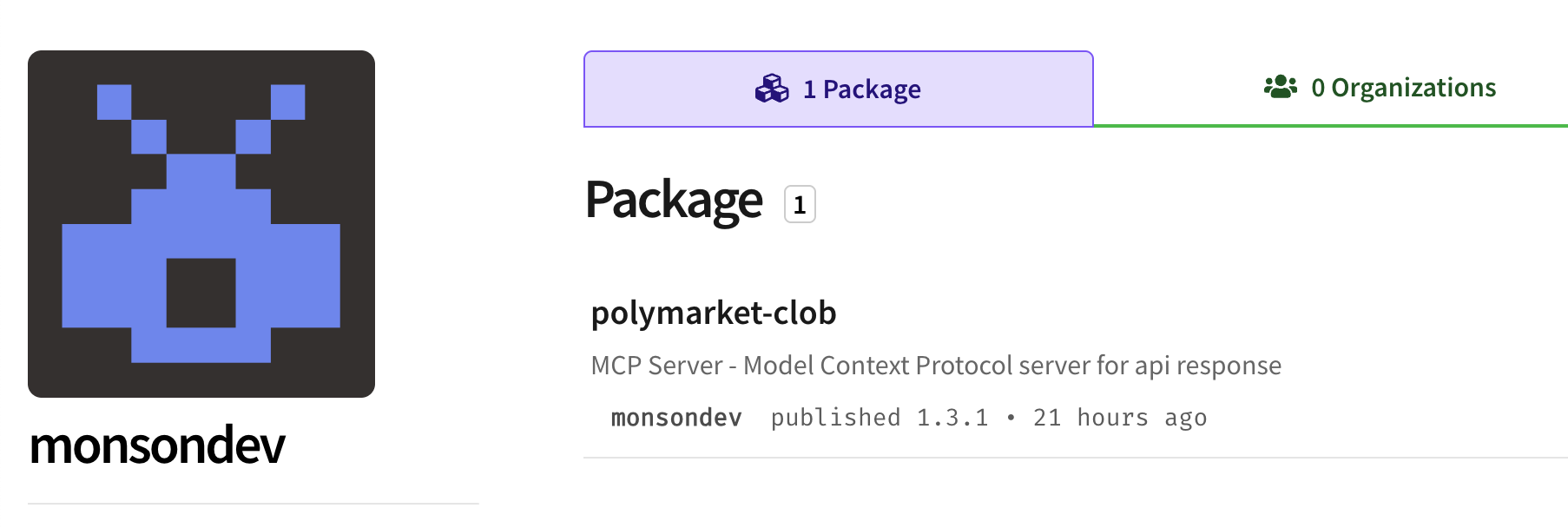 So, is this pretending to be a Polymarket crypto package? Or a hash validator package? Or is it an MCP server for an API?